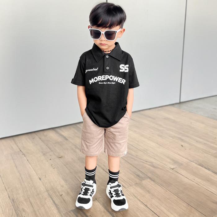 KAOS ANAK WANGKI POLO BAJU ANAK LAKI LAKI PEREMPUAN BAHAN COTTON COMBED 24S HALUS STYLISH ELEGAN USIA 1-12 TAHUN - HITAM, S