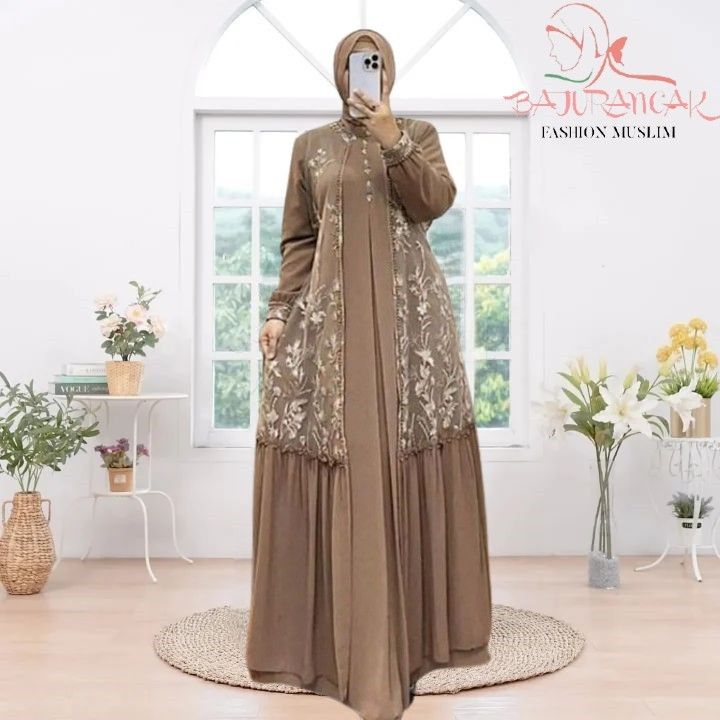 BAJU GAMIS RAYA DRESS BROKAT CERUTI FASHION MUSLIM PESTA MEWAH WANITA APLIKASI PAYET BRUKAT