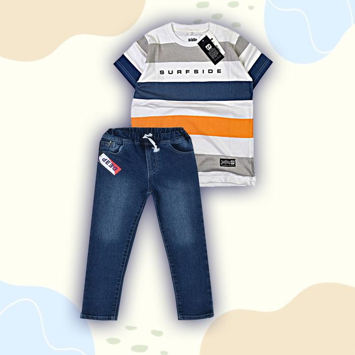 SETELAN ANAK LAKI LAKI KAOS DISTRO & CELANA JEANS PANJANG PREMIUM USIA 1 2 3 4 5 6 7 8 9 10 11 12 TAHUN SET FULLPRINT JEANS PANJANG PREMIUM - PRS CARAMEL + JEANS PJG SB, M