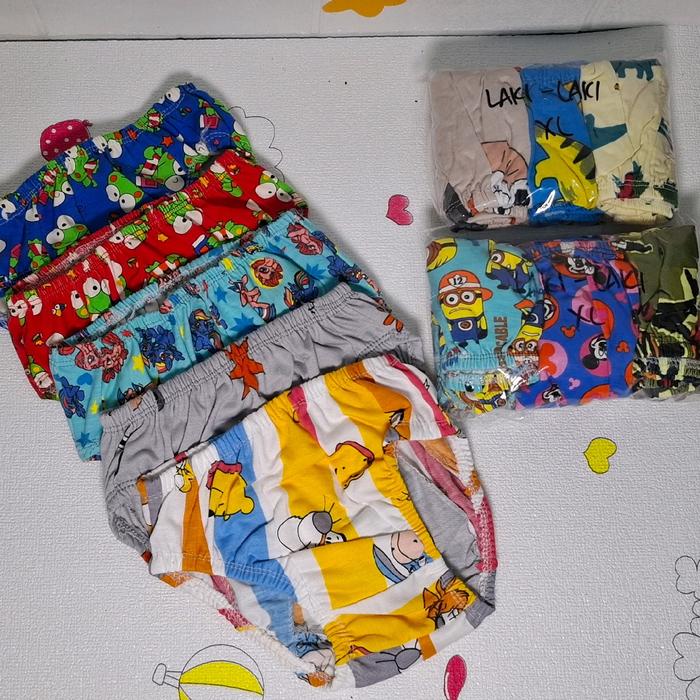 6PCS CELANA DALAM ANAK PRINTING KARAKTER PEREMPUAN/LAKI LAKI KATUN SPANDEK FASHION - MOTIP LAKI LAKI, S