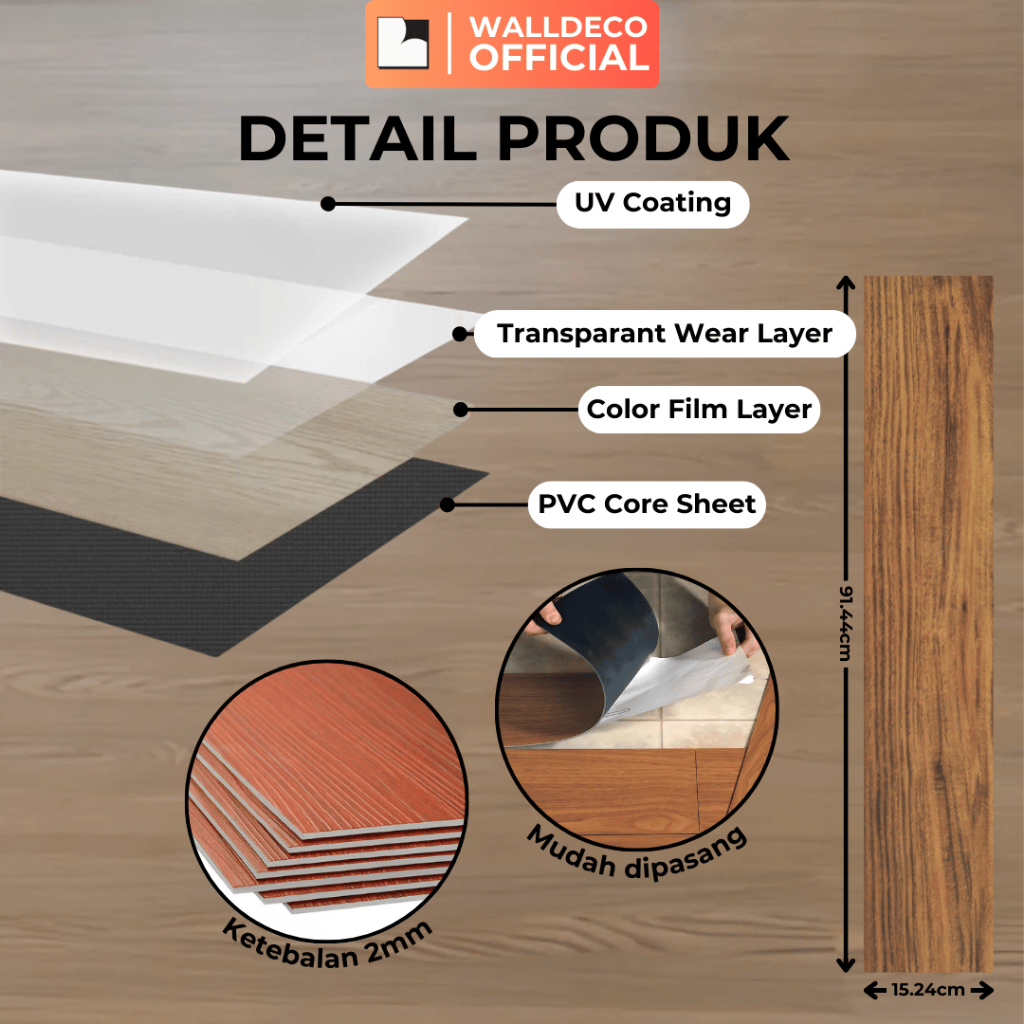 Floor Vinyl Lantai Stiker Vinyl 36 PCS Vinyl Lantai Kayu PVC 91,5cmx15cm Premium Quality dan Lem WD3