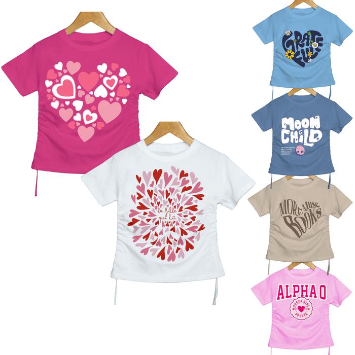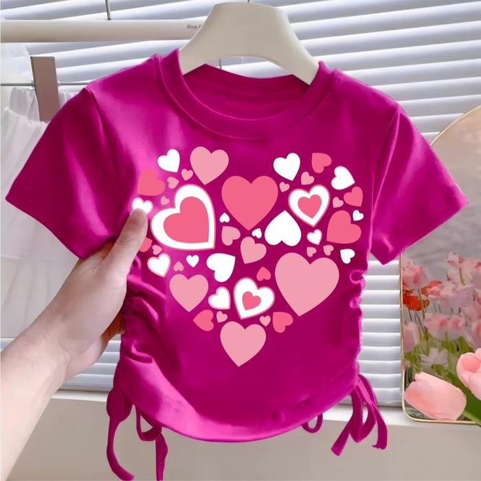 KAOS ANAK KERUT / MODEL CROPTOP KERUT ANAK PEREMPUAN 1 - 12 TAHUN - PINK FANTA, S