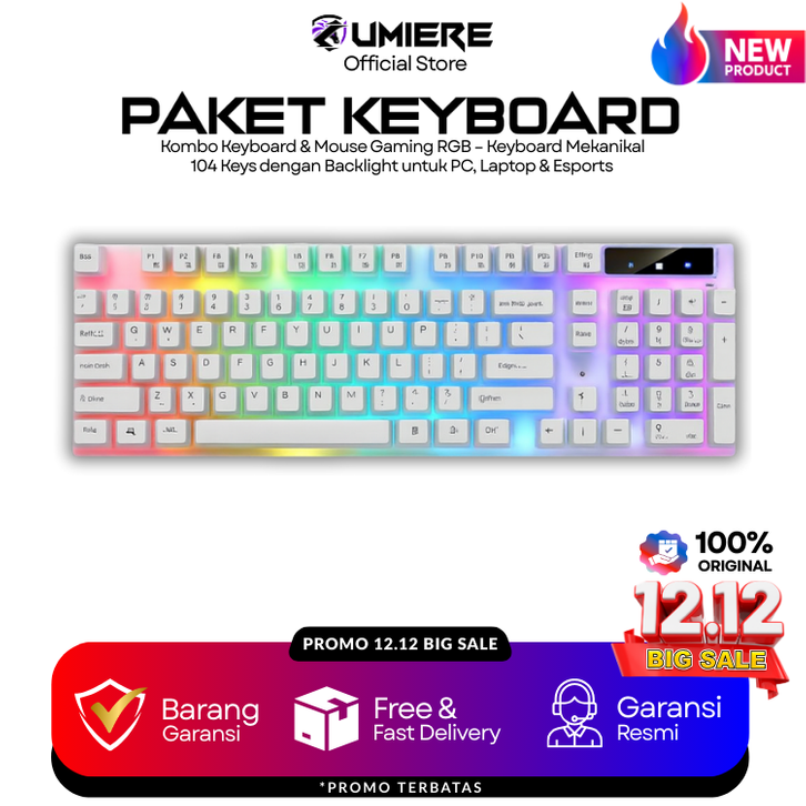 Kombo Keyboard & Mouse Gaming RGB – Keyboard Mekanikal 104 Keys dengan Backlight untuk PC, Laptop & Esports