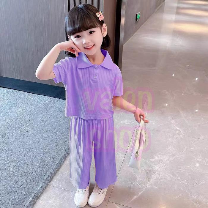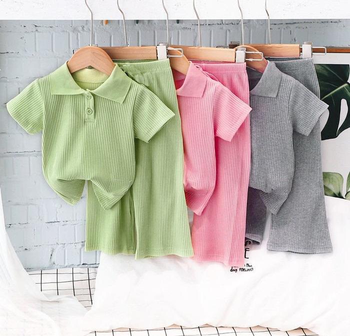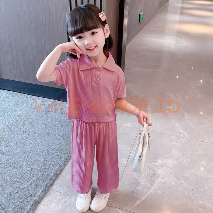 SETELAN POLO RAJUT ANAK PEREMPUAN - DUSTY PINK, S 3-4 THN