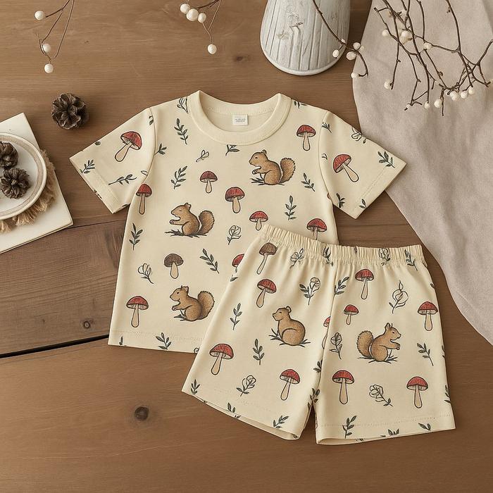 LITTLEVIN SETELAN ANAK PEREMPUAN FULL MOTIF CREAM SERIES KARAKTER 0-5 TAHUN - DEER FRIEND, S