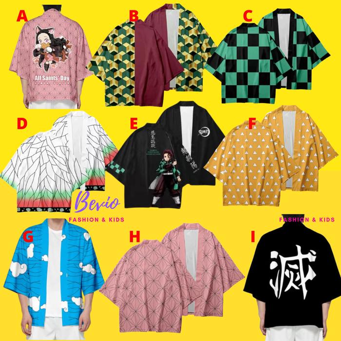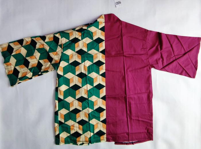KIMONO DEMON SLAYER COSPLAY BAJU ANAK HAORI ANIME JEPANG TANJIRO IMPOR - E, 160