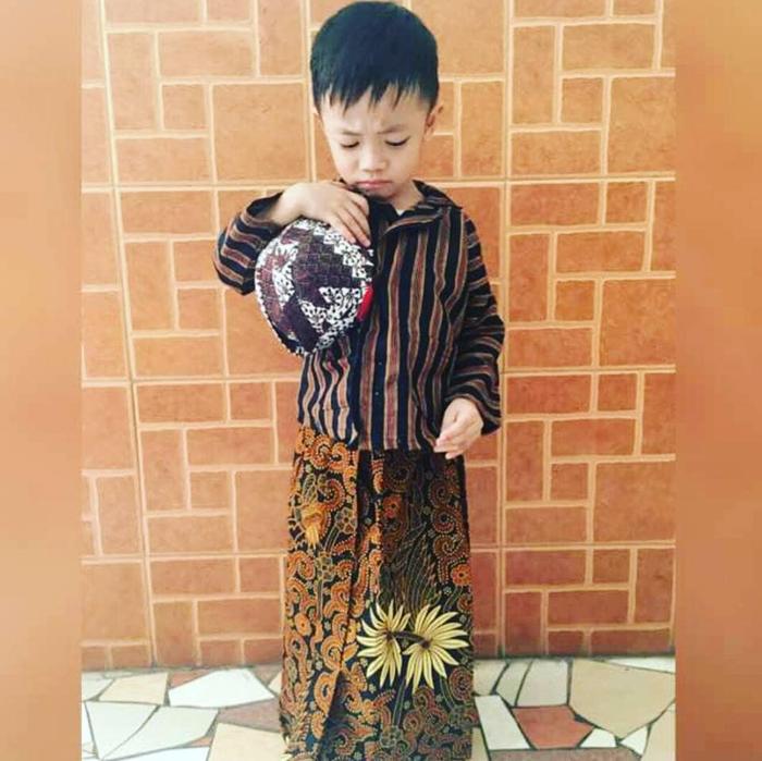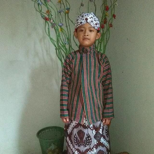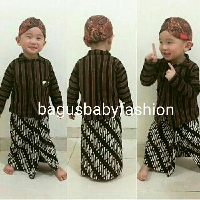 BAJU ADAT TRADISIONAL JAWA SURJAN LURIK ANAK SET BLANGKON & JARIK - XS 6 - 12 BULAN, COKLAT HITAM
