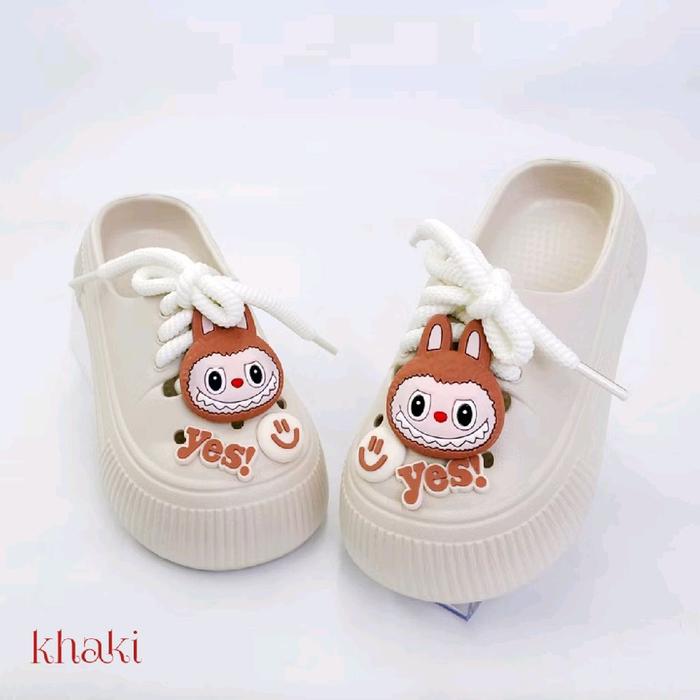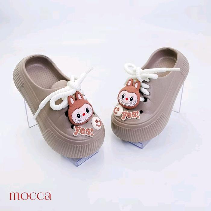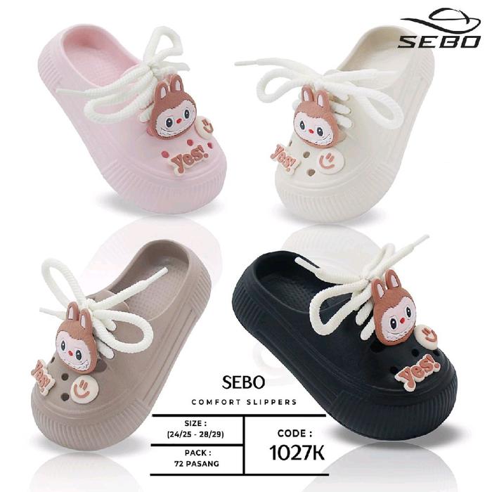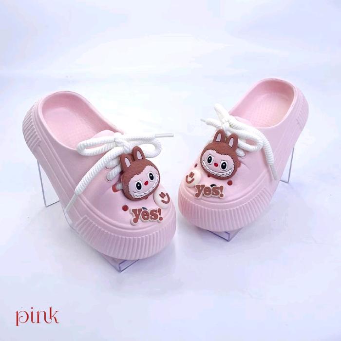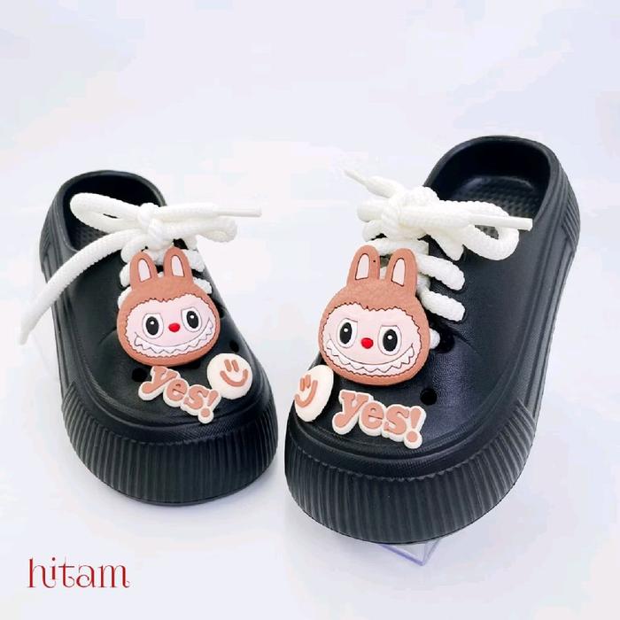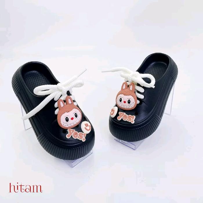 SANDAL SEPATU ANAK PEREMPUAN SLIP-ON ANTI SLIP LABUBU VIRAL MODEL TERBARU - KODE 1027 - HITAM, 24-25