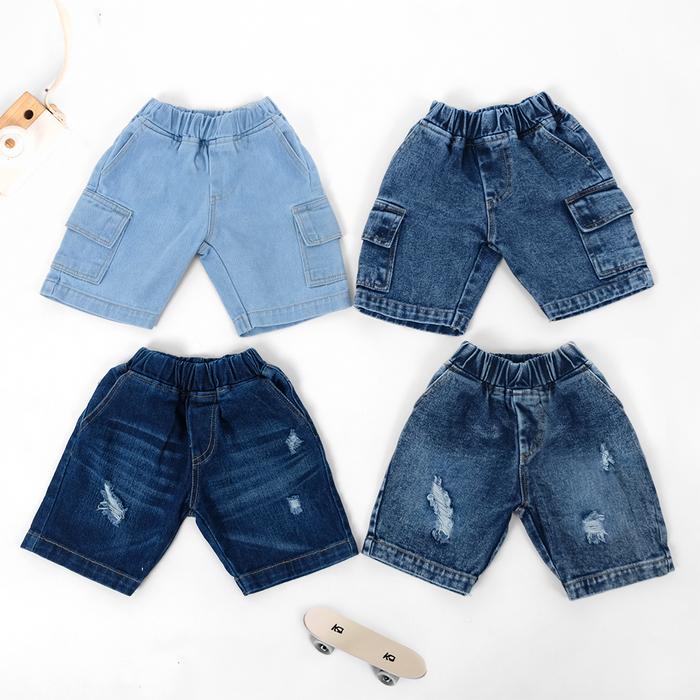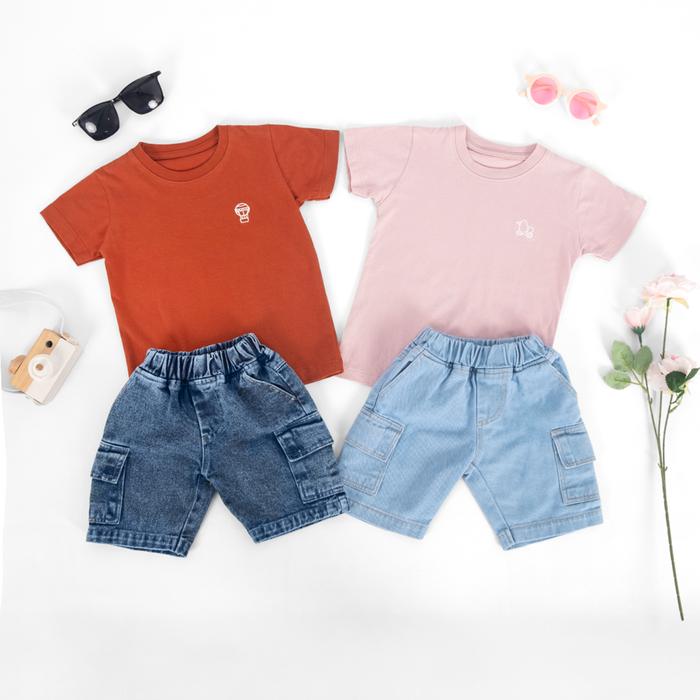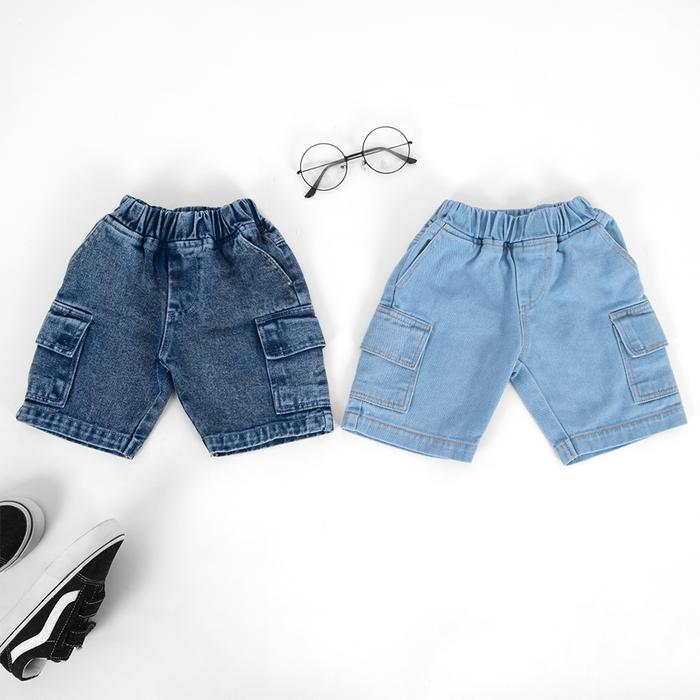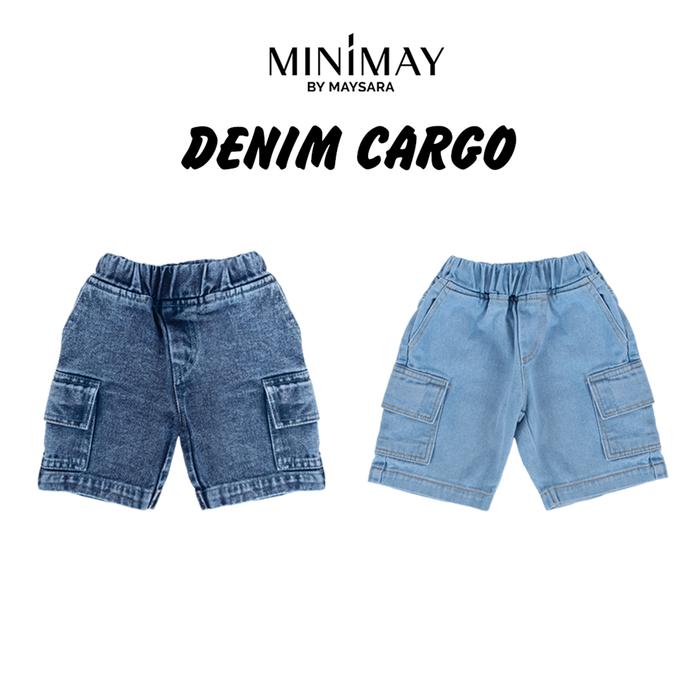 CELANA PENDEK DENIM ANAK CARGO SAKU LAKI LAKI PEREMPUAN USIA 1 2 3 4 5 6 7 8 9 10 11 12 TAHUN MINIMAY MAYSARA - DENIM CARGO-BIO, 1 TAHUN