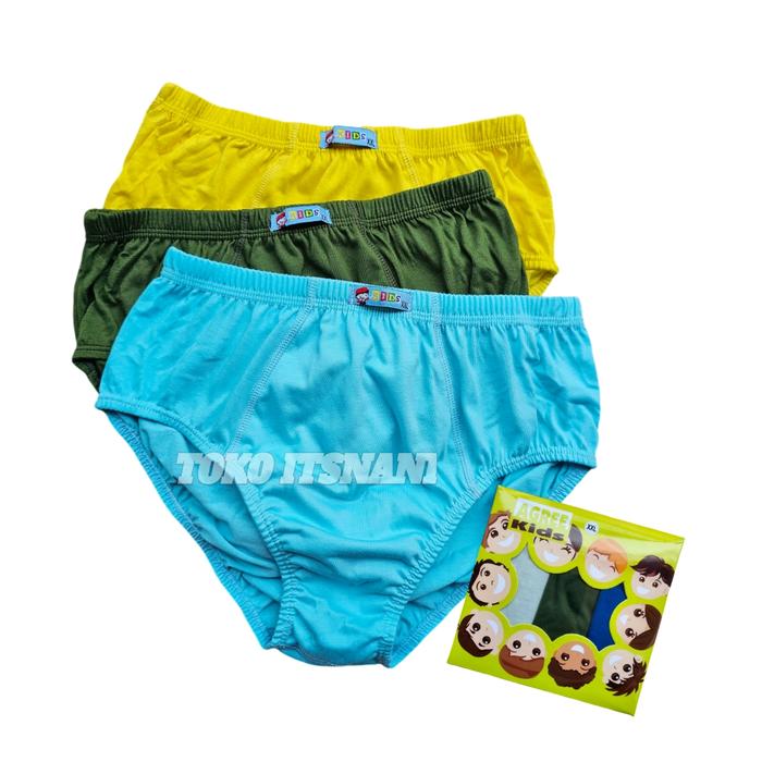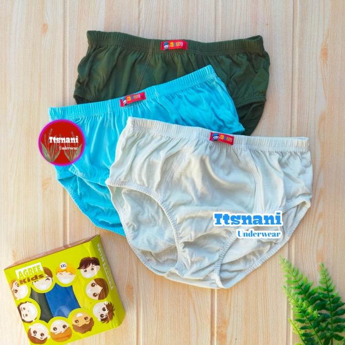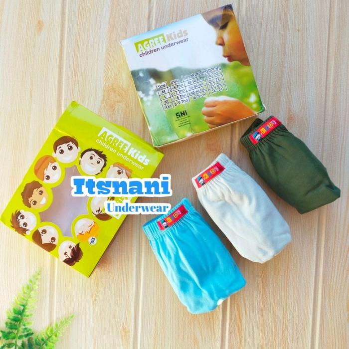 CD ANAK LAKI-LAKI AGREE AK 014 KATUN POLOS ISI 3PCS | CELANA DALAM KIDS BOY LEMBUT HALUS - RANDOM, M -3PCS