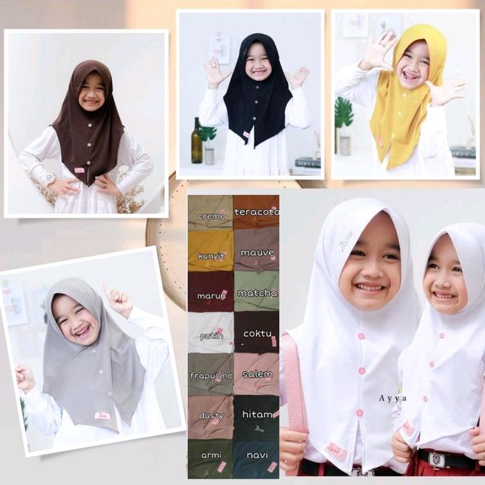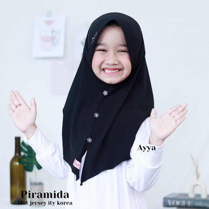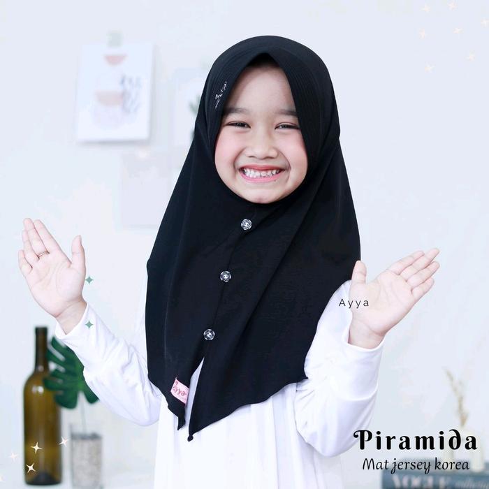 BERGO PIRAMID_JILBAB SEKOLAH AYYA HIJAB MUSLIM ANAK CANTIK - HITAM, SIZE S