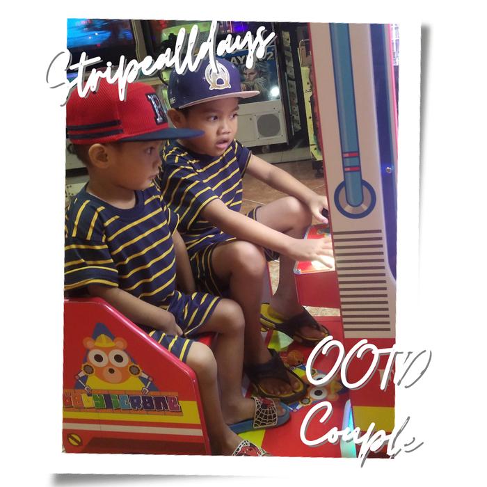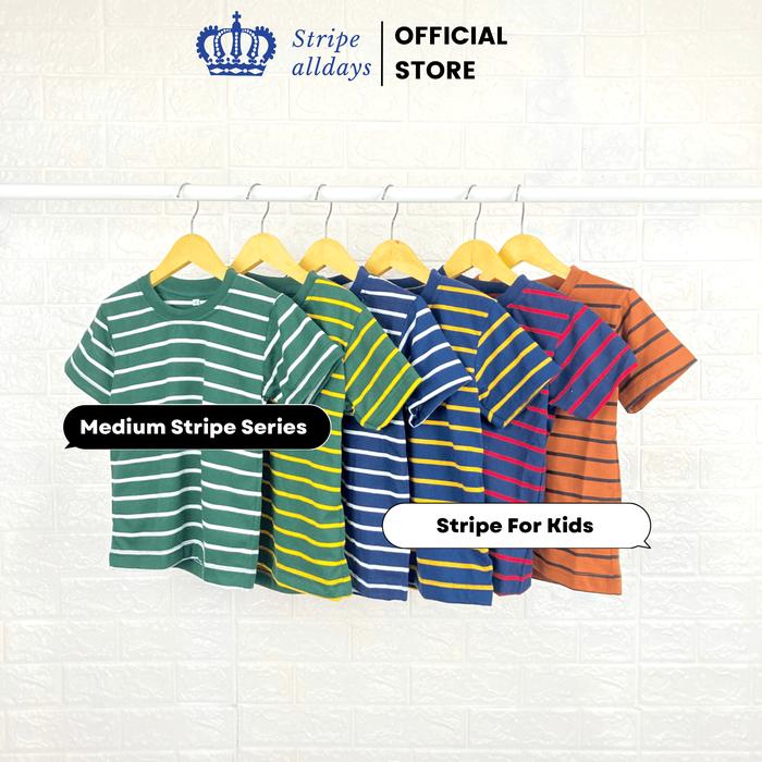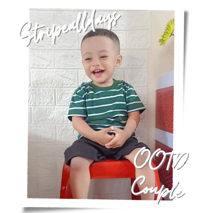 KAOS STRIPE ANAK MEDIUM V4 SALUR LAKI-LAKI PEREMPUAN UNISEX COTTON CVC 24S COUPLE - MD36 ARMY WHITE, 1 TAHUN