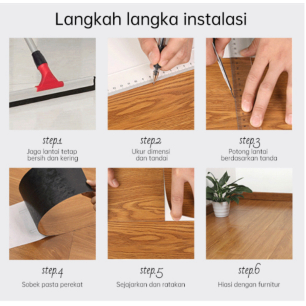 PROMO PERBOX!! Vynil lantai Sticker lantai Motif kayu bahan PVC lebih awet untuk pemakaian lama ukuran 91,2cmx15,2cm teb