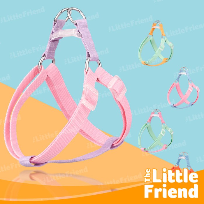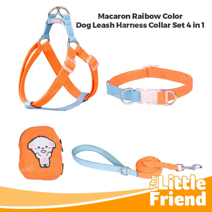 Harness Collar Leash Tali Anjing Kucing Macaron Rainbow Color 4 in 1