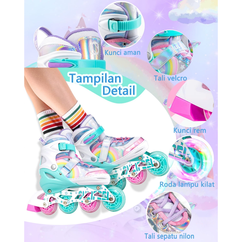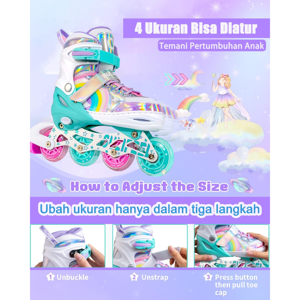 Sepatu Roda Inline IXCE Warna Pink - Anak Perempuan - Pemula - Roda Bercahaya - Hadiah untuk Anak