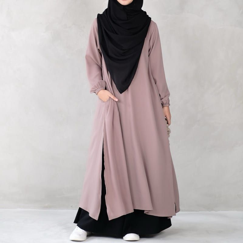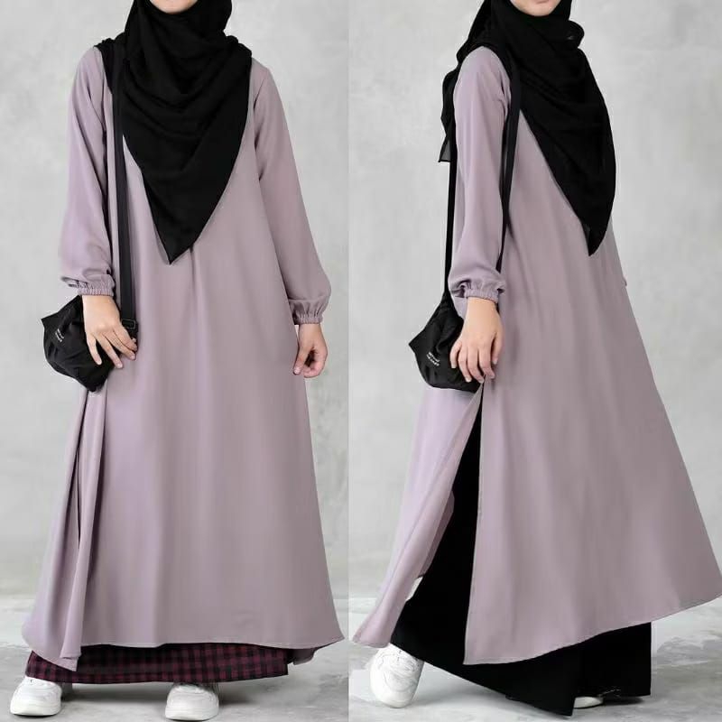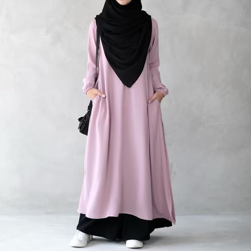 Gamis Simpel Remaja Kekinian Crincle Airflow Dress Polos