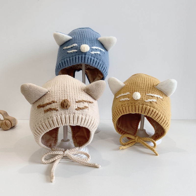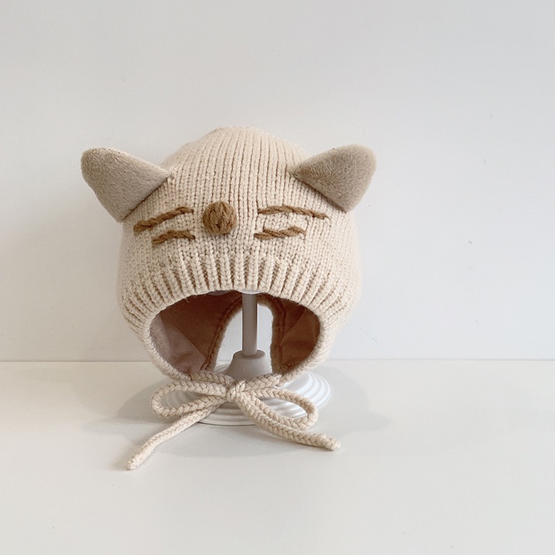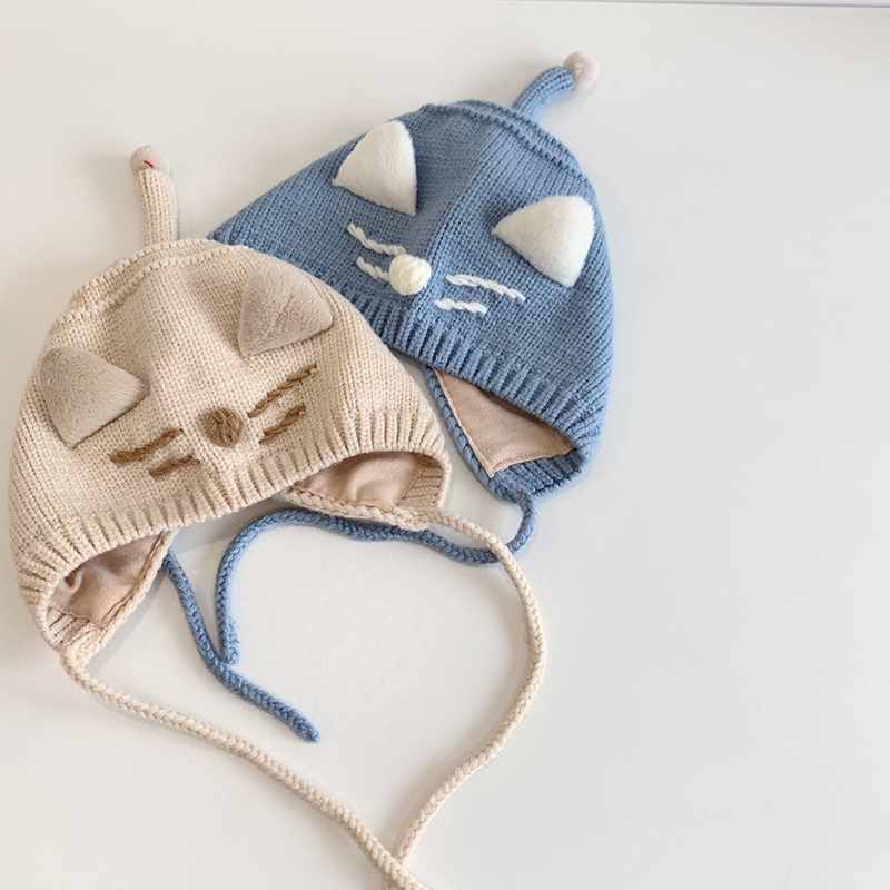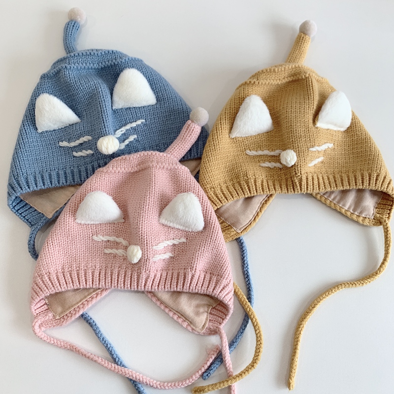 Babywill.Id Kupluk Bayi Perempuan Usia 6 Bulan - 2 Tahun Lucu Motif Kucing Bahan Rajut Premium