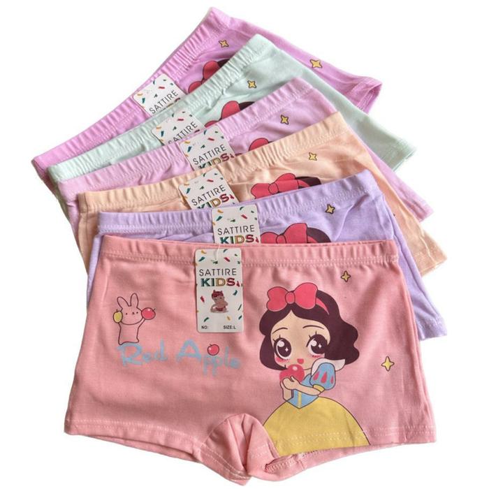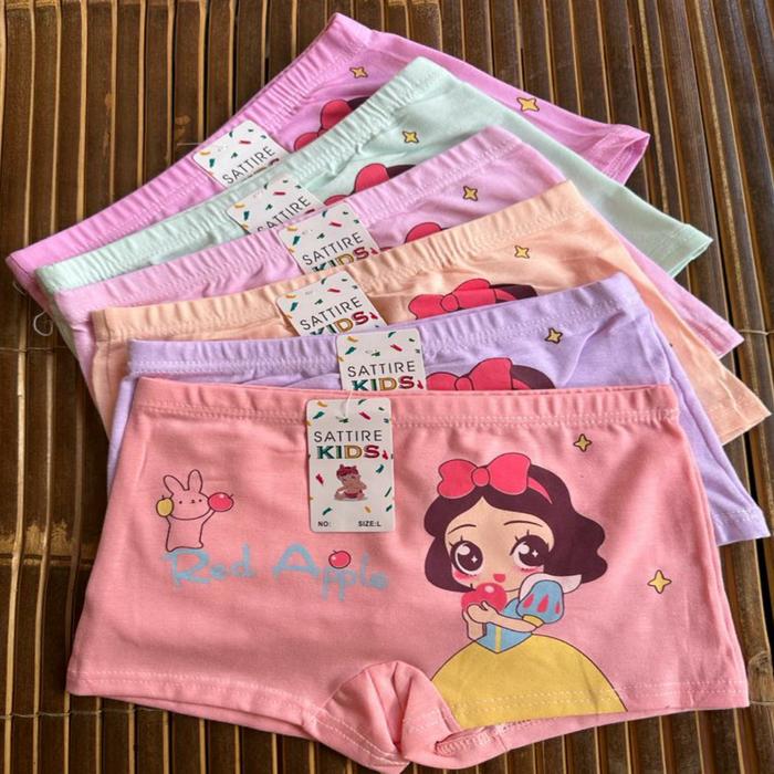 PAKET ISI 6 PCS 12 PCS BOXER SATTIRE ANAK PEREMPUAN CELANA DALAM ANAK PEREMPUAN LEMBUT NYAMAN KATUN POLOS SETRIP - 6 PCS, M