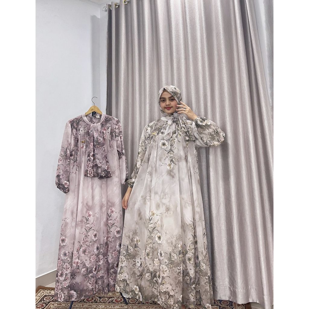 GAMIS CERUTY BABY DOLL PLUS KERUDUNG MOTIF PREMIUM TERMURAH//GAMIS MOTIF SERAGAMAN ELEGAN