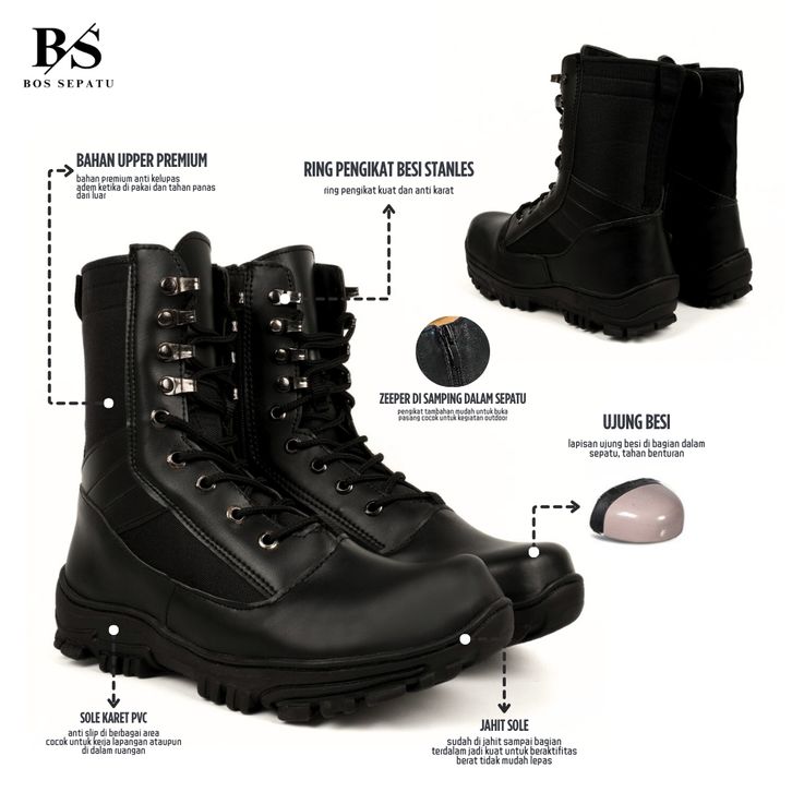 Sepatu PDL Sepatu PDL Safety Pria Ujung Besi Pelindung Kaki Ziper High Quality Kerja Lapangan Outdor