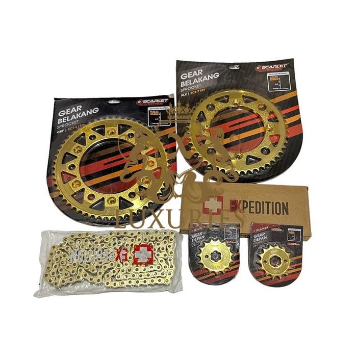 SCARLET RACING WR - Gear set WR 155 Plus Rantai Expedition Gold Original Sepaket Gir Set