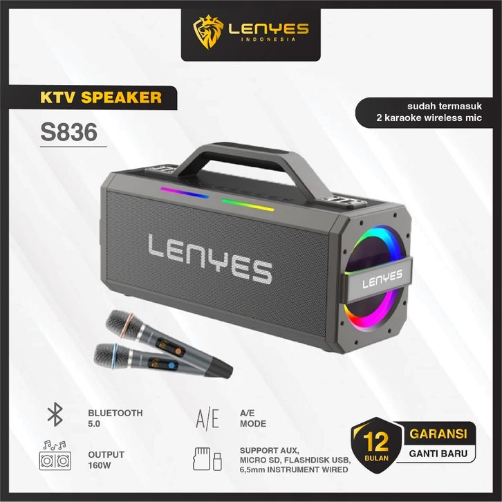 LENYES S836 300W Outdoor KTV Wireless Speaker + Microphone Karaoke Bluetooth 5.0 DSP Super Power Subwoofer TWS