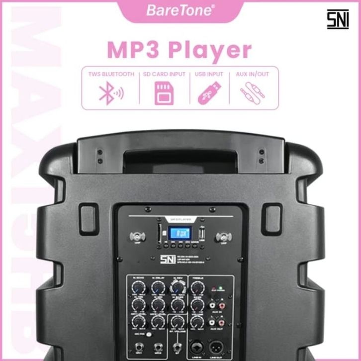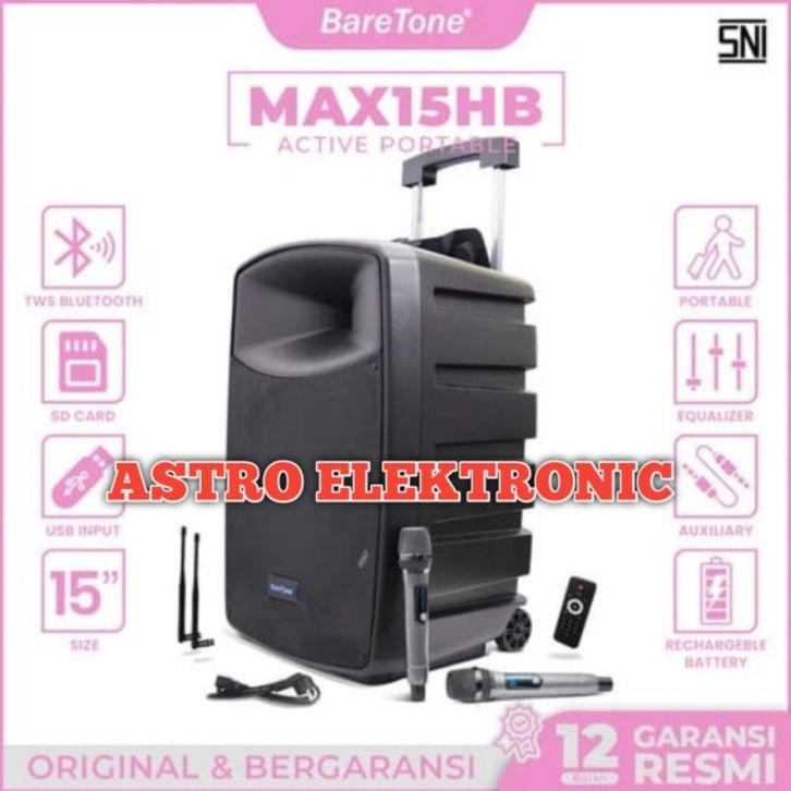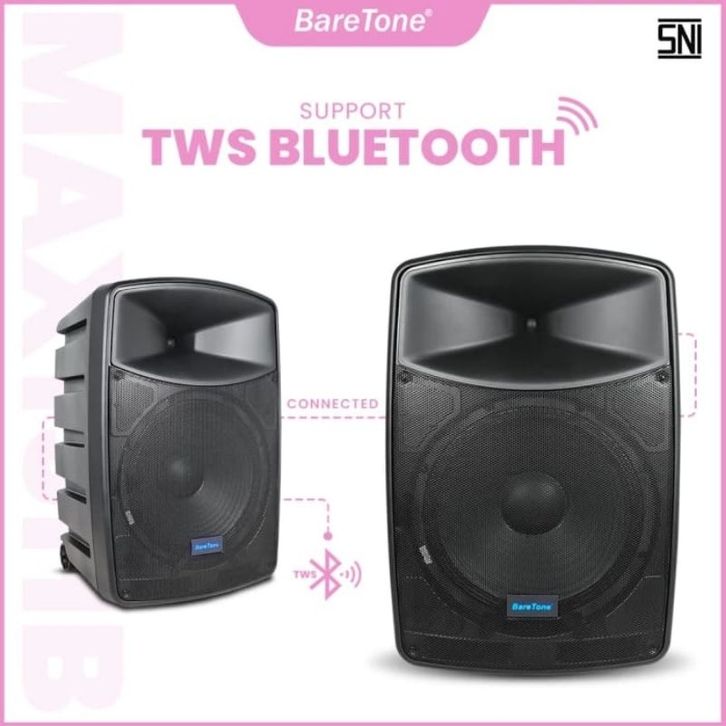 Speaker Portable 15 Inch BareTone MAX15HB RMS 600 Watt TWS Bluetooth