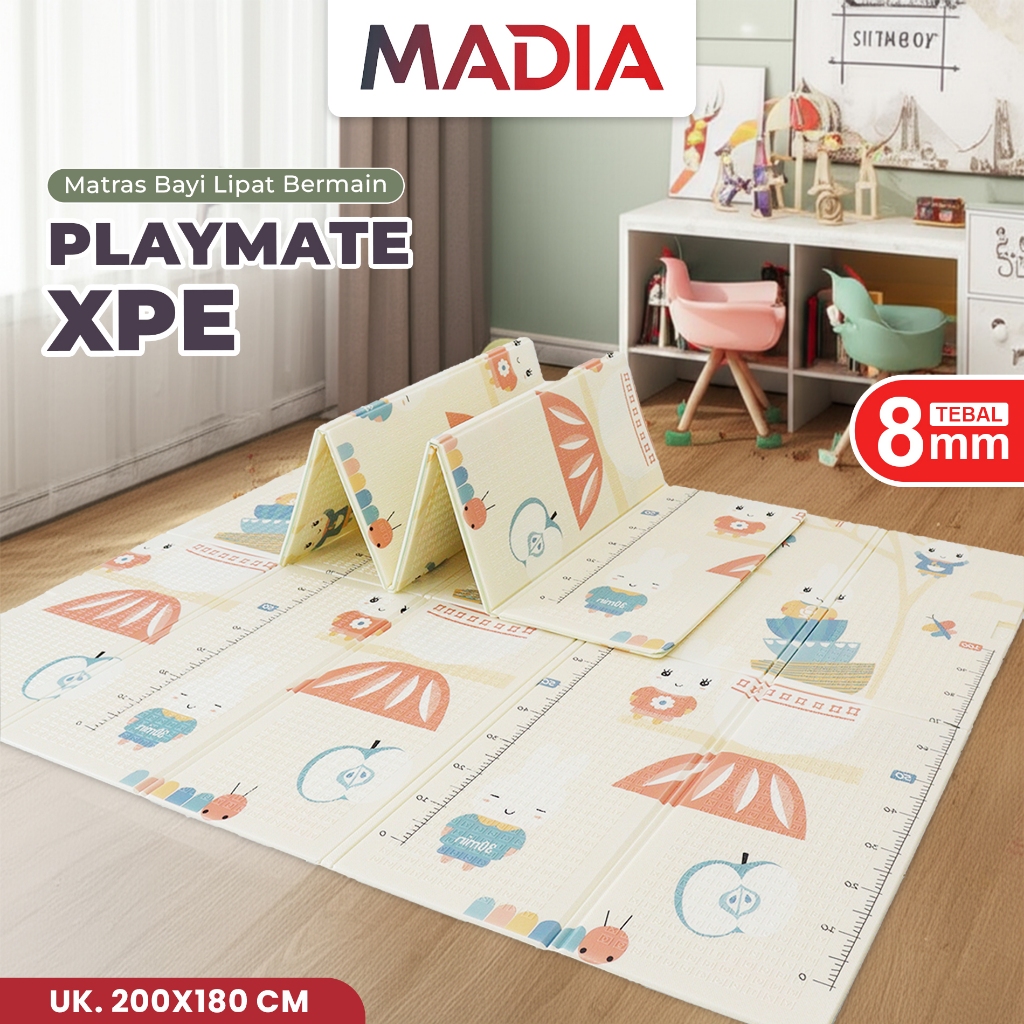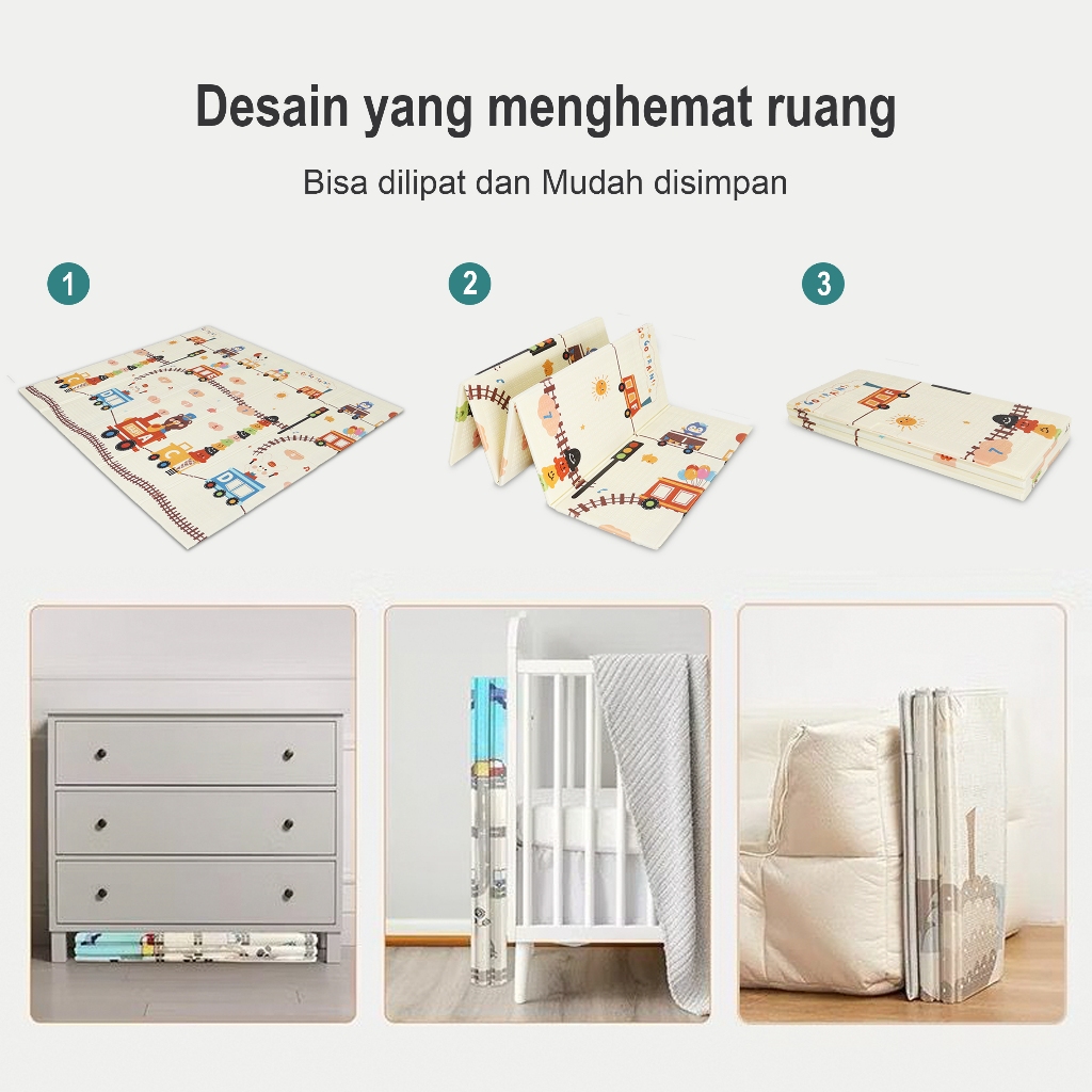 Madia Playmat Tikar Lipat Anak 180x200cm Tebal 8mm Karpet Lipat Bayi Motif Bolak Balik XPE Free Tas
