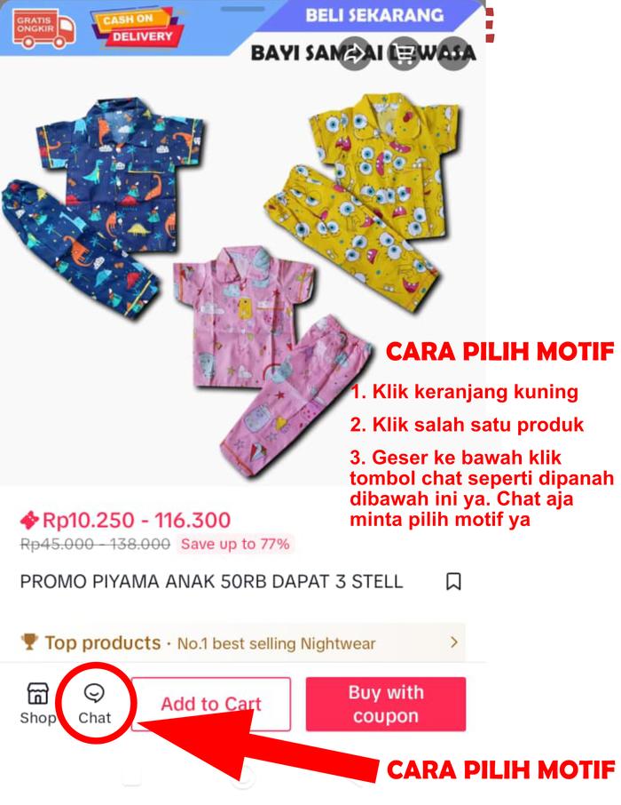 PIYAMA ANAK PREMIUM MURAH 100RB 6 STELL BEBAS PILIH MOTIF FASHION - SIZE 10 4PCS, CEWEK