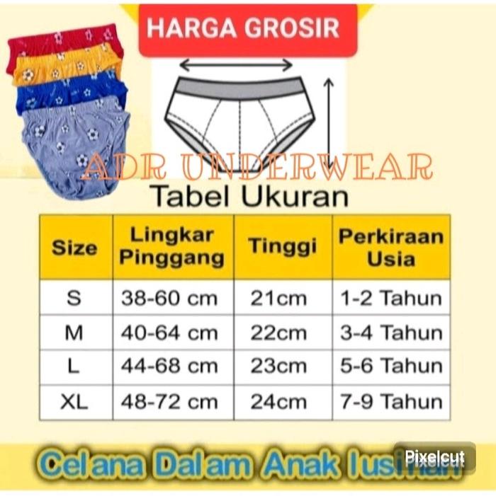 12 PCS CELANA DALAM ANAK COWOK MOTIF BOLA - BAHAN KATUN LEMBUT DAN NYAMAN - FASHION PAKAIAN DALAM - CD ANAK MOTIF BOLA - S, 12 PCS ( SATU LUSIN )