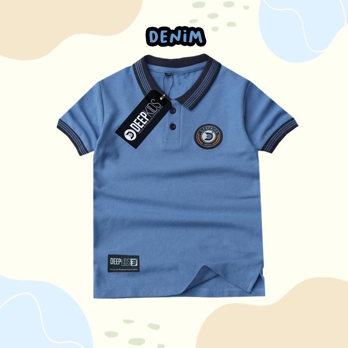 DEEPKIDS BAJU KAOS POLO KERAH ANAK LAKI LAKI UMUR BAHAN COTTON CVC 24S PREMIUM UNTUK ANAK USIA 1 2 3 4 5 6 7 8 9 10 11 12 TAHUN - KKL DENIM, S