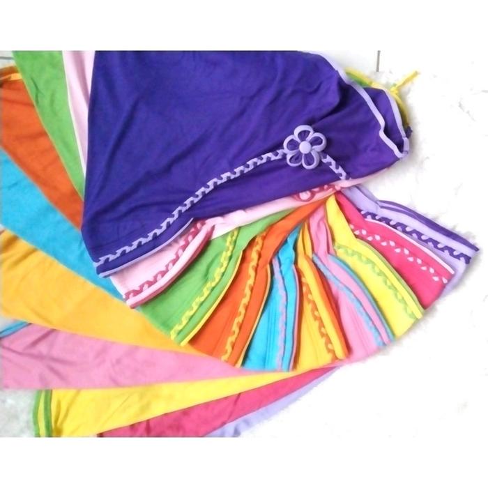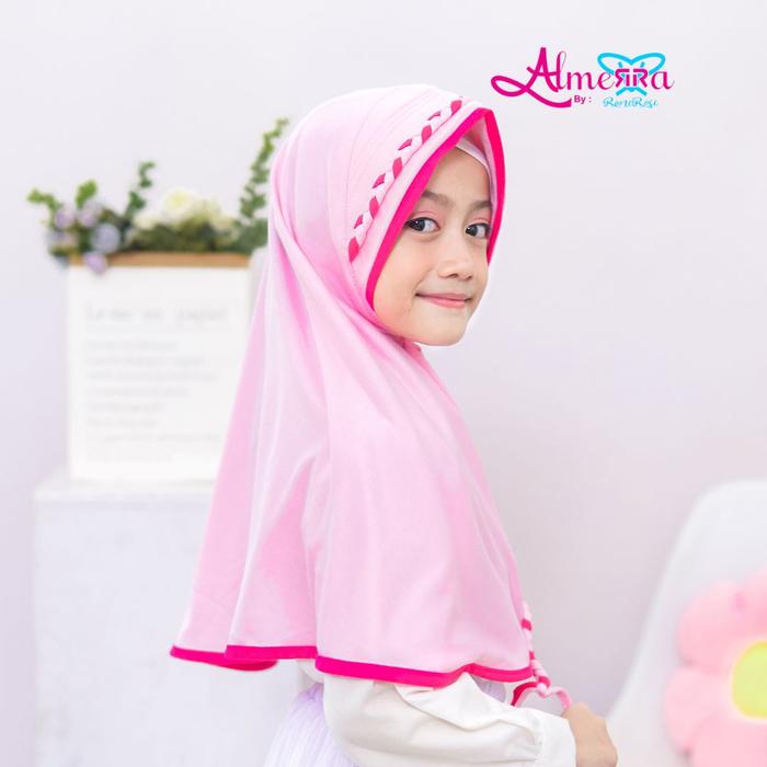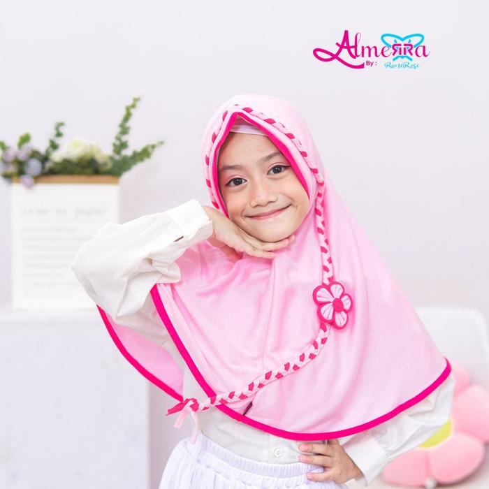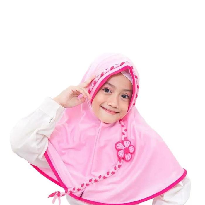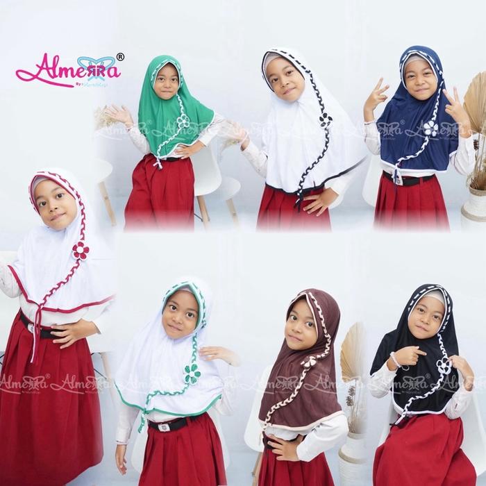ALMERRA-HIJAB KERUDUNG MUSLIM ANAK INSTAN BERGO SEKOLAH & SEHARI-HARI BAHAN KAOS MODEL BUNGA KEPANG SERUT - PUTIH LIST MAROON