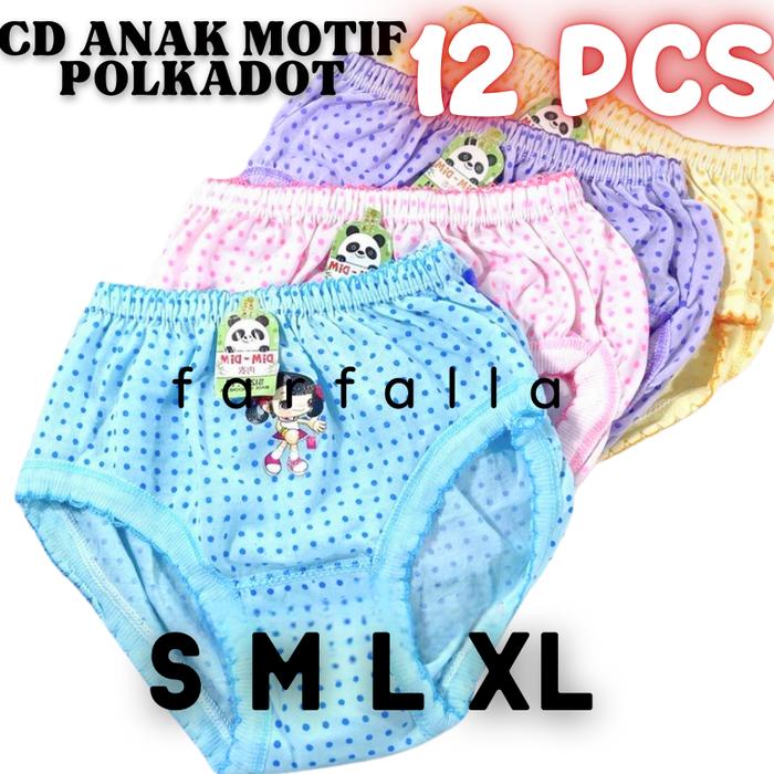 12 PCS CELANA DALAM ANAK CEWEK DIM - DIM TUTUL GROSIR KATUN - 12 PCS SIZE S
