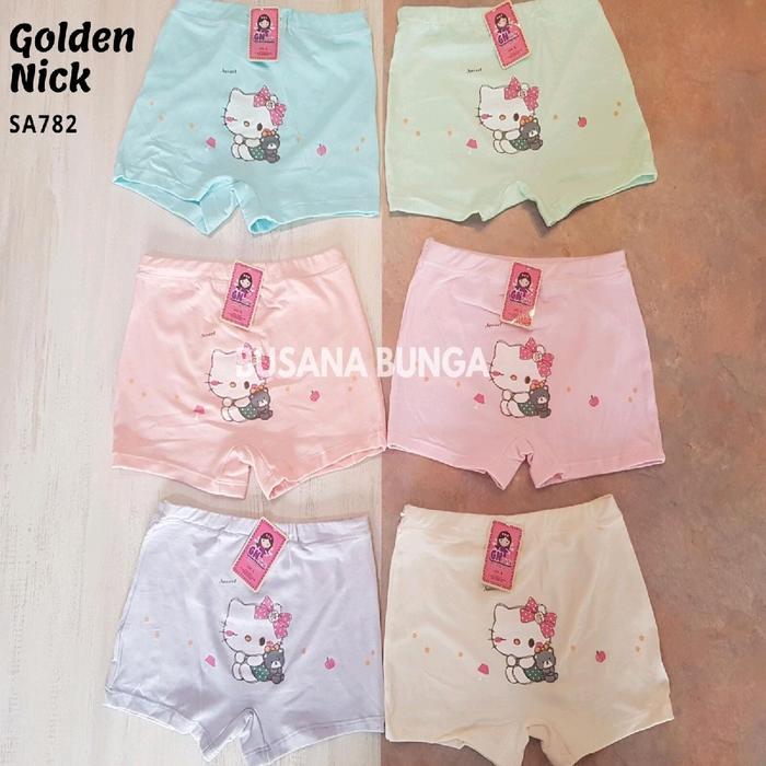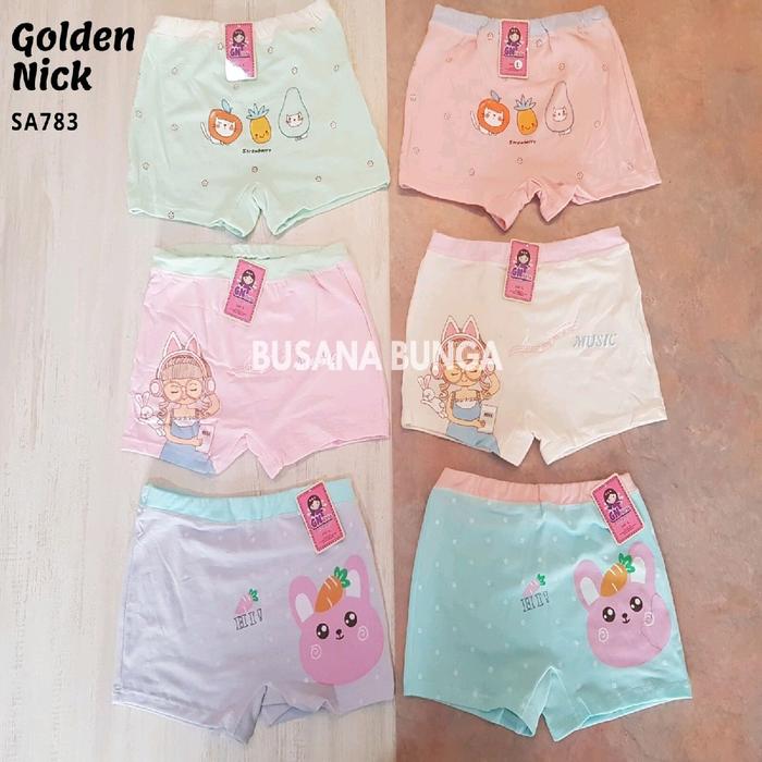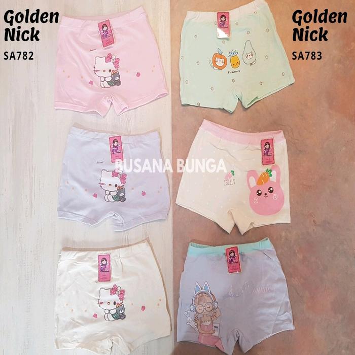 GROSIR CD/CELANA DALAM ANAK PEREMPUAN/CEWE BOXER GOLDEN NICK SA782, SA783 PE SPANDEK SABLON - SA782, SERI 3 PCS - M