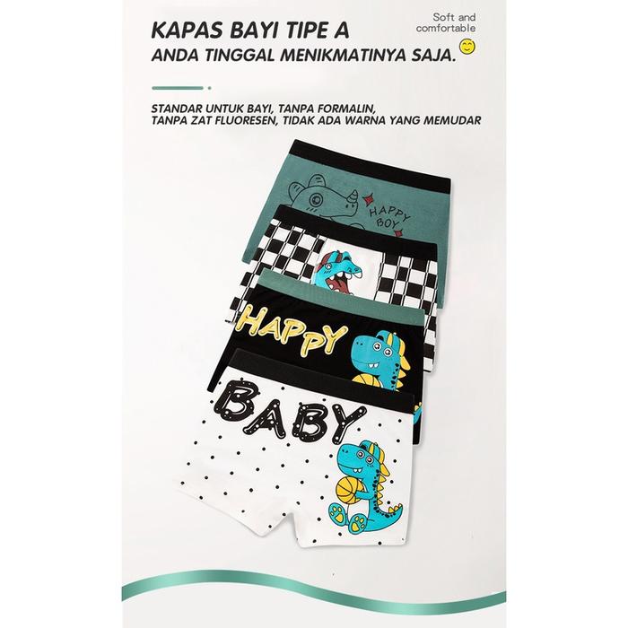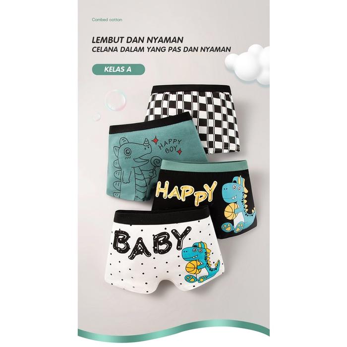4PCS CELANA DALAM ANAK LAKI LAKI KATUN MURNI CELANA DALAM BOXER ANAK CD CELANA DALAM BAYI-4PCS - HBKL, M