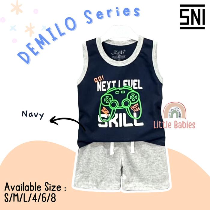 SETELAN SINGLET BAJU ANAK COWOK 1-8 TAHUN "DEMILO SERIES" / SETELAN BAJU ANAK KELFI - NAVY DEMILO, S