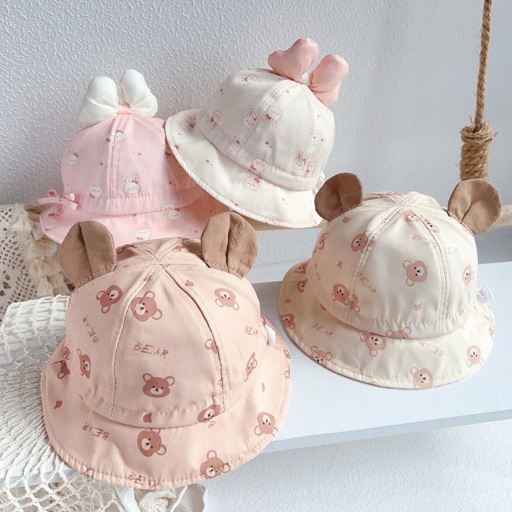 KKD Topi Bayi Karakter Bunny & Bear – Model Bundar Unisex (0–2th) Ada Tali Serut TP173