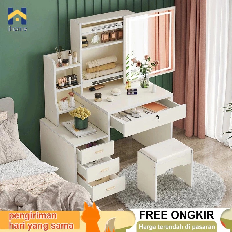 [New fashion] Meja rias - Meja Rias dengan Lampu LED Meja Rias Putih Kaca Meja Rias Modern Minimalis Meja Kosmetik