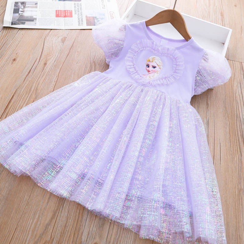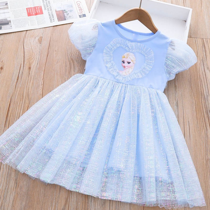 [PRINCESS KESLI] 1-9 Tahun Dress Frozen Elsa Gaun Anak Perempuan Lengan Pendek Kids Katun Lembut