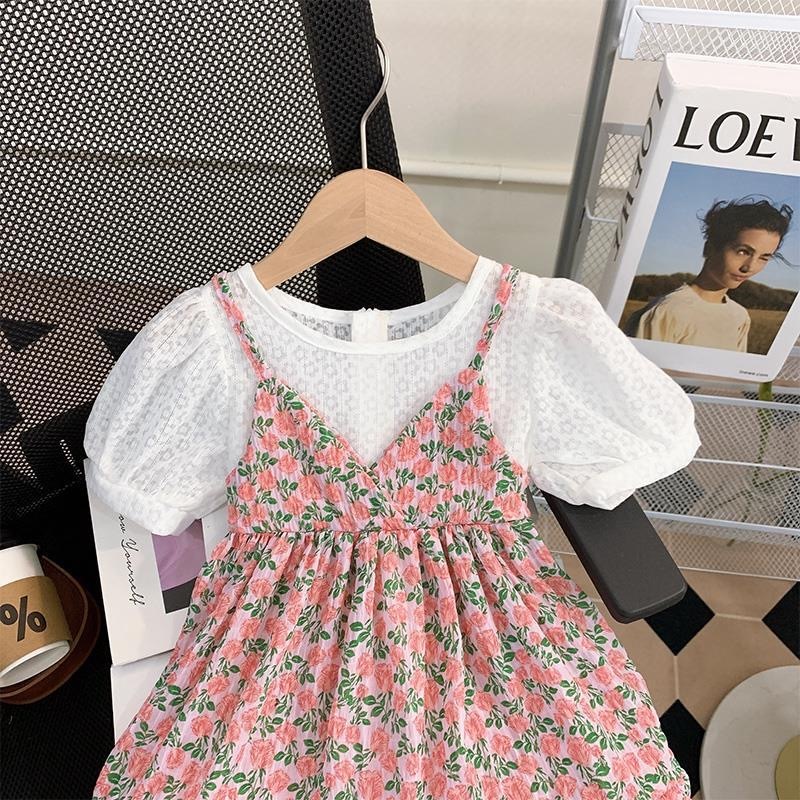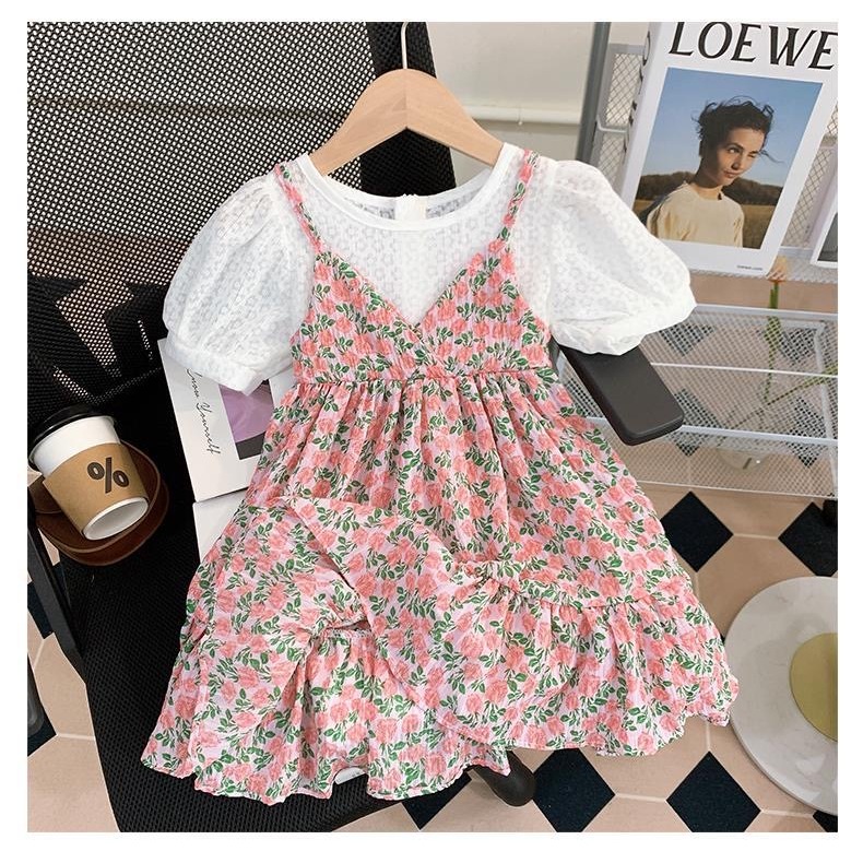 [PRINCESS KESLI] 2-11 Tahun Gaun bunga anak perempuan 2025 rok suspender tipis musim panas baru rok dua potong palsu sif
