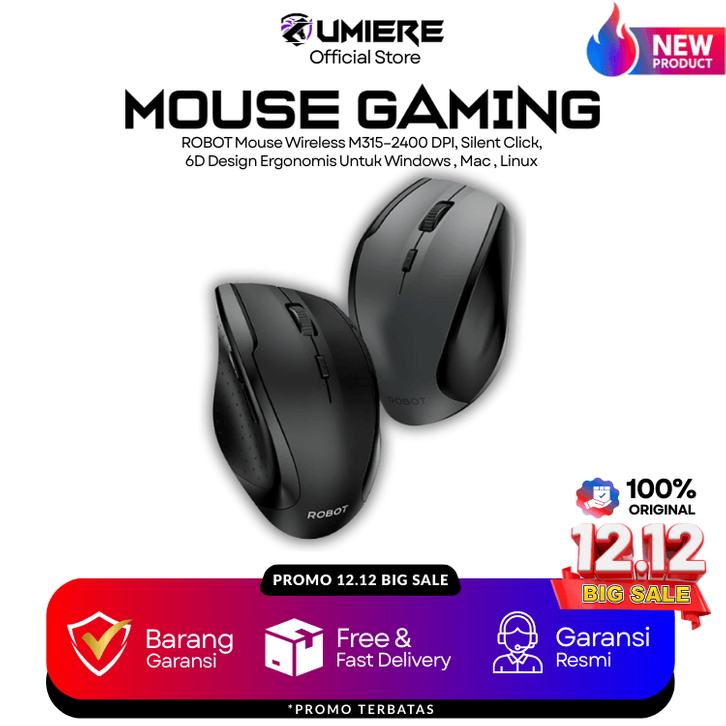 [ EXCLUSIVE LAUNCH ] ROBOT Mouse Wireless M315–2400 DPI, Silent Click, 6D Design Ergonomis Untuk Windows , Mac , Linux ,