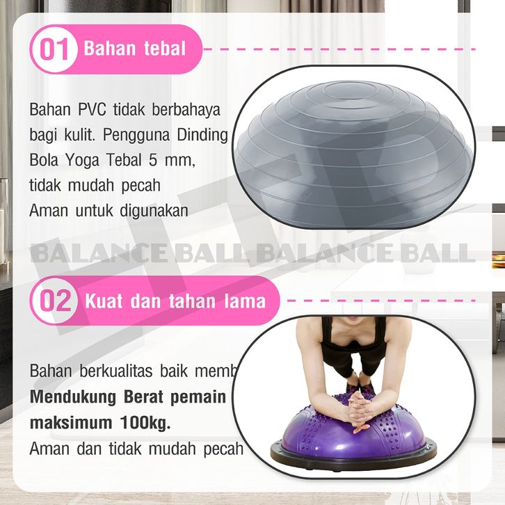 TERLARIS BETTER SPORT BALANCE BOSU BALL BOLA YOGA PILATES PVC ANTI SLIP TRAINING GYM UKURAN 46CM 58CM