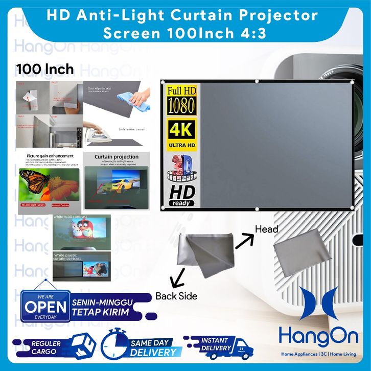 TERMURAH HD Anti-Light Curtain Projector Screen 100 Inch 4:3 Portable ufebl