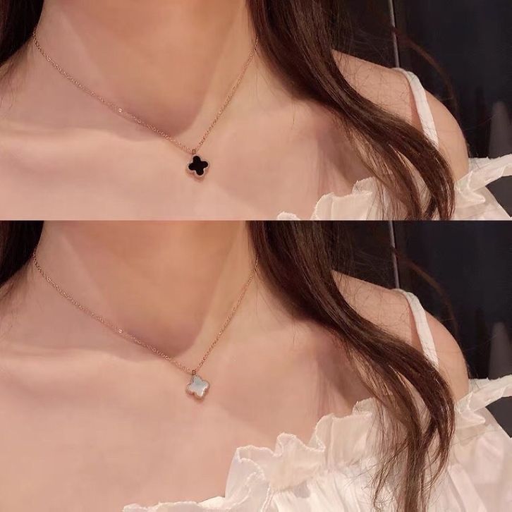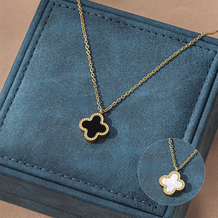 Kalung Titanium Clover Bolak Balik Hitam Dan Putih Korean Style Premium 437