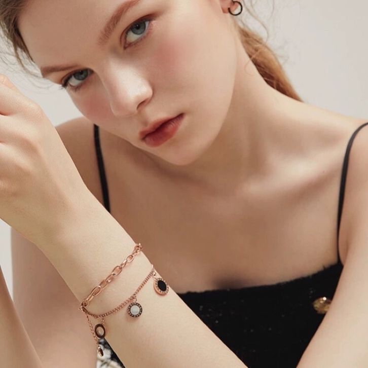Gelang Titanium Premium 2 Layer Korea Vintage Style Warna Rosegold 173