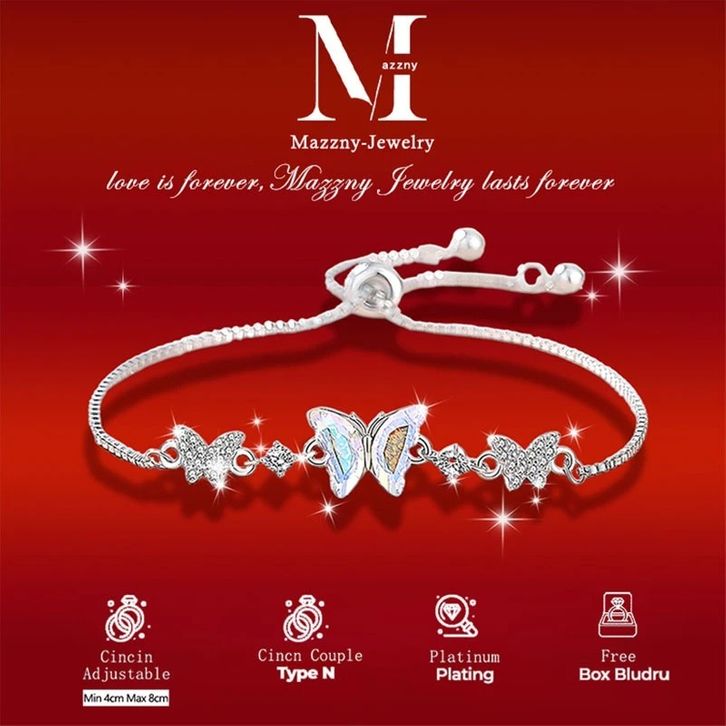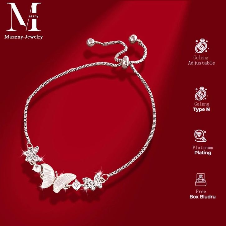 Gelang Aesthetic Butterfly Silver Bracelet's Women's Model Bracelet Hadiah Ulang Tahun Perhiasan Free Gift Box