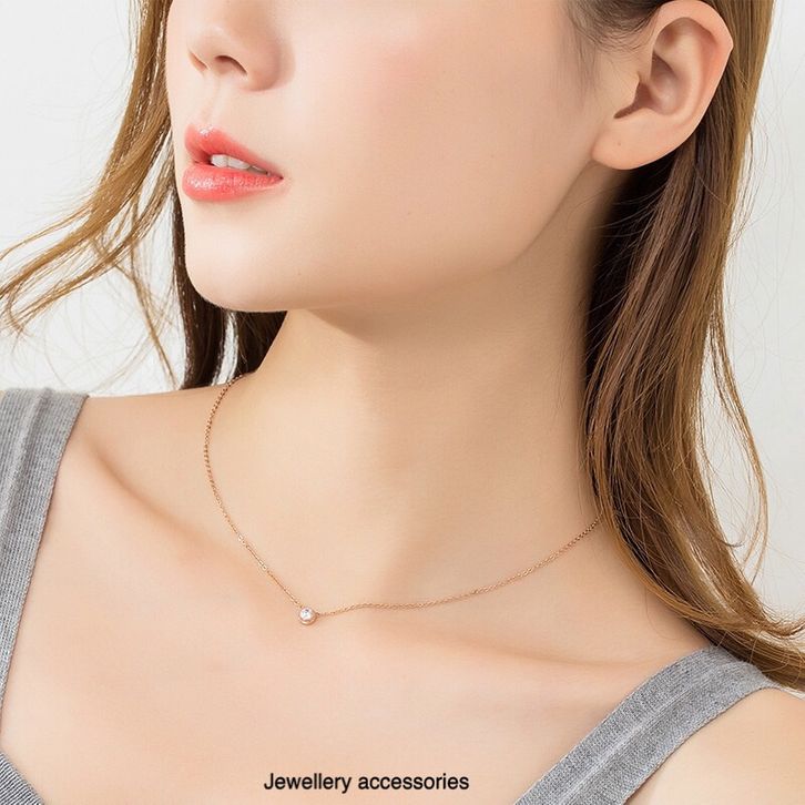 Kalung Titanium Single Diamond Anti Karat Korea Fashion Style Simple 681