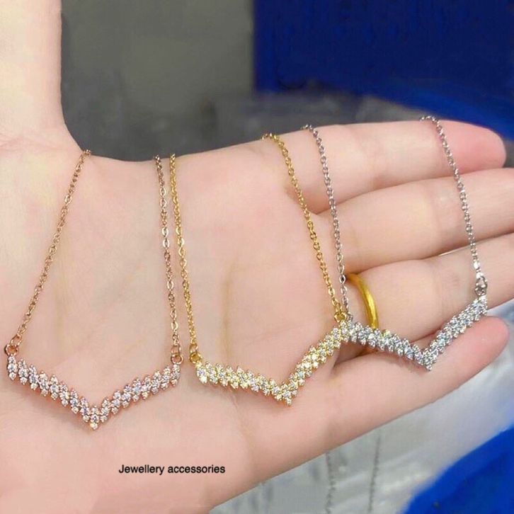 Kalung Titanium Fuji Permata Tanam Elegan Fashion Style Premium K708