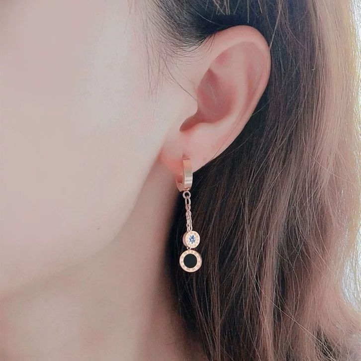 Anting Hoops Titanium Black Diamond Anti Luntur Anti Karat A1074