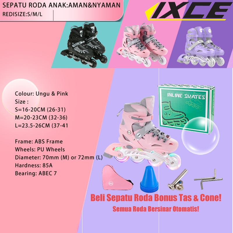 IXCE Sepatu Roda Anak Adjustable - Lampu LED, Bisa Diatur Ukuran 28-32 (FREE Tas)